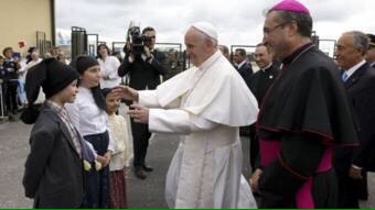 Abana bambaye nk’abo i Fatima babonekewe baramukije Papa