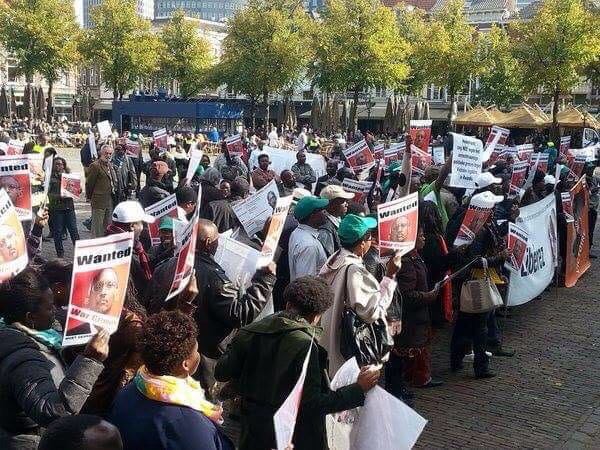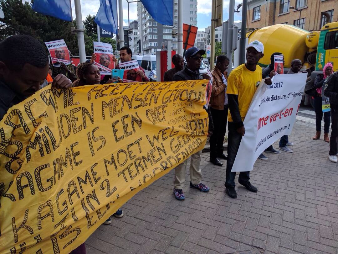 Abantu benshi bagwiriyemwo abanyarwanda bitabiriye imyiyerekano yo kwiyamiriza President Paul Kagame w’Urwanda aho bamwagiriza ubwicanyi bwagahomerabunwa mu gihugu c’Urwanda no mu karere k’ibiyaga binini.