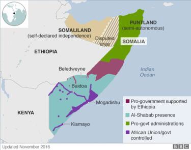Abasirikare ba Amisom batujije abo bagwanyi ba al-Shabab mu gisagara ca Mogadishu mu 2011, ariko igice kinini c’igihugu kiri mu minwe y’abo bagwanyi.