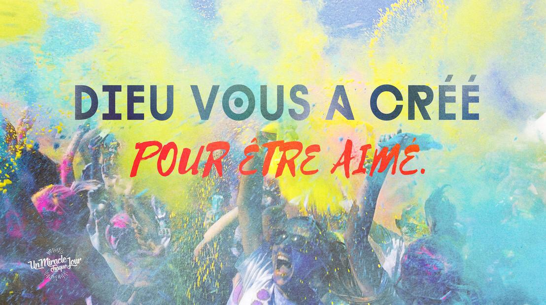 Vous êtes créé(e) pour vivre et expérimenter l’amour de Dieu chaque jour… que vous le sentiez ou pas. Dieu vous aime et rien ne saurait changer cela. Ni le temps, ni la peine, ni le passé. La Bible dit : « Même si les montagnes s’éloignaient, même si les collines étaient ébranlées, mon amour ne s’éloignera pas de toi et mon alliance de paix ne sera pas ébranlée, dit celui qui a compassion de toi, l’Eternel. » (Esaïe 54.10)