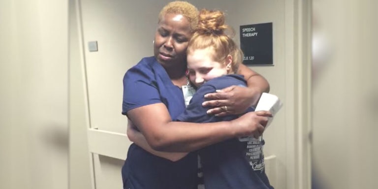 Depuis 11 jours, Bailey, 17 ans, était immobilisée dans un fauteuil roulant. Ses médecins ne lui donnaient que 5% de chances de marcher à nouveau.Mais la jeune fille chrétienne n’a jamais perdu l’espoir d’être entièrement restaurée par le Seigneur, déclarant avoir toujours été assurée d’être « dans Ses mains, et prête à vivre ce qu’Il choisirait ». Bailey était entourée de plusieurs infirmières, mais l’une d’elle a compté plus que les autres tout au long de son séjour à l’hôpital, et c’est à elle qu’elle a choisi de faire la surprise de sa restauration.
