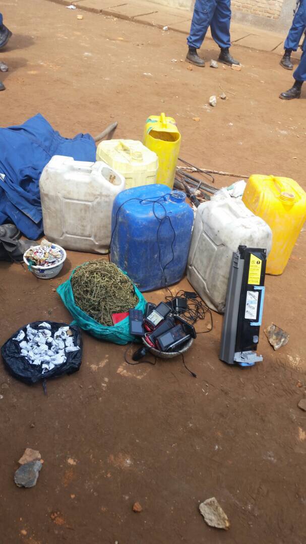 Mw’isakwa ryakozwe, Petero NKURIKIYE avuga ko hafashwe terefone ngendanwa 12, hafi ibiro bibiri vy’urumogi, inzoga zitemewe n’amategeko, imyambaro itatu y’igiporisi c’Uburundi, imbugita 15 n’ibindi.