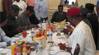 Buramatari Rochas Okorocha ari mu bagiye kuraba Buhari amenyeshako nabo nyene babajije umukuru w’igihugu ibivugwa ko ubuzima bwiwe bugeramiwe ariko ngo yaguma abatwenga.