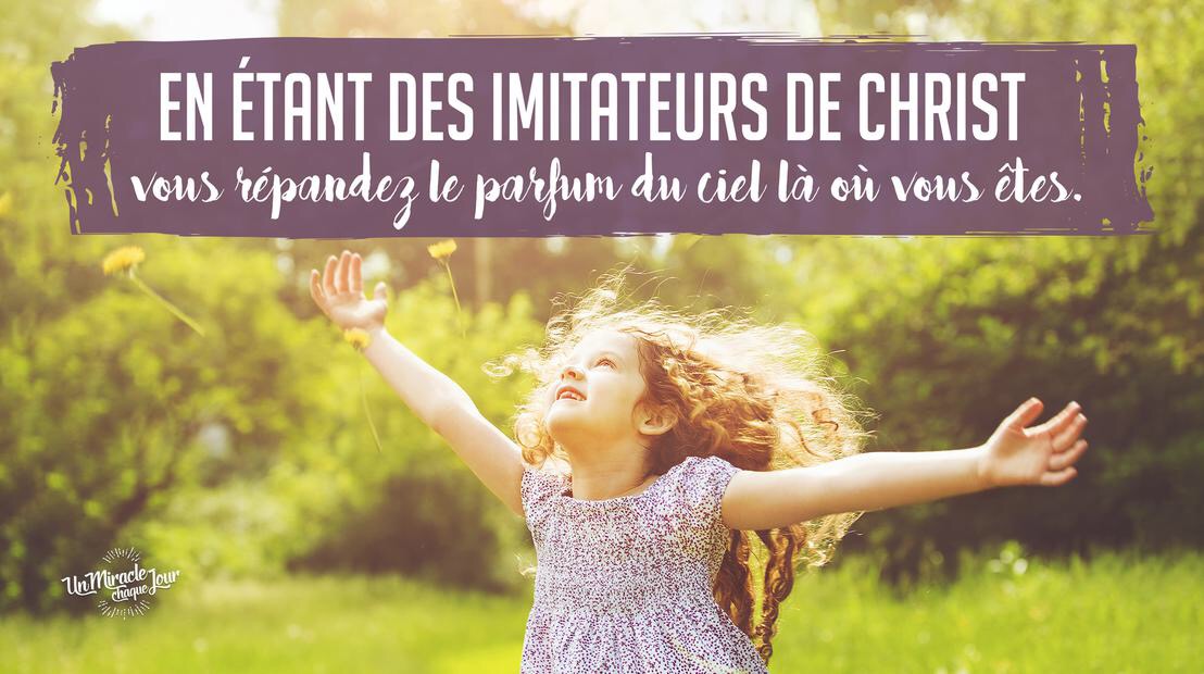 « Soyez donc les imitateurs de Dieu, puisque vous êtes ses enfants bien-aimés, et vivez dans l’amour en suivant l’exemple de Christ, qui nous a aimés et qui s’est donné lui-même pour nous comme une offrande et un sacrifice dont l’odeur est agréable à Dieu. » (La Bible, Ephésiens 5.1-2)