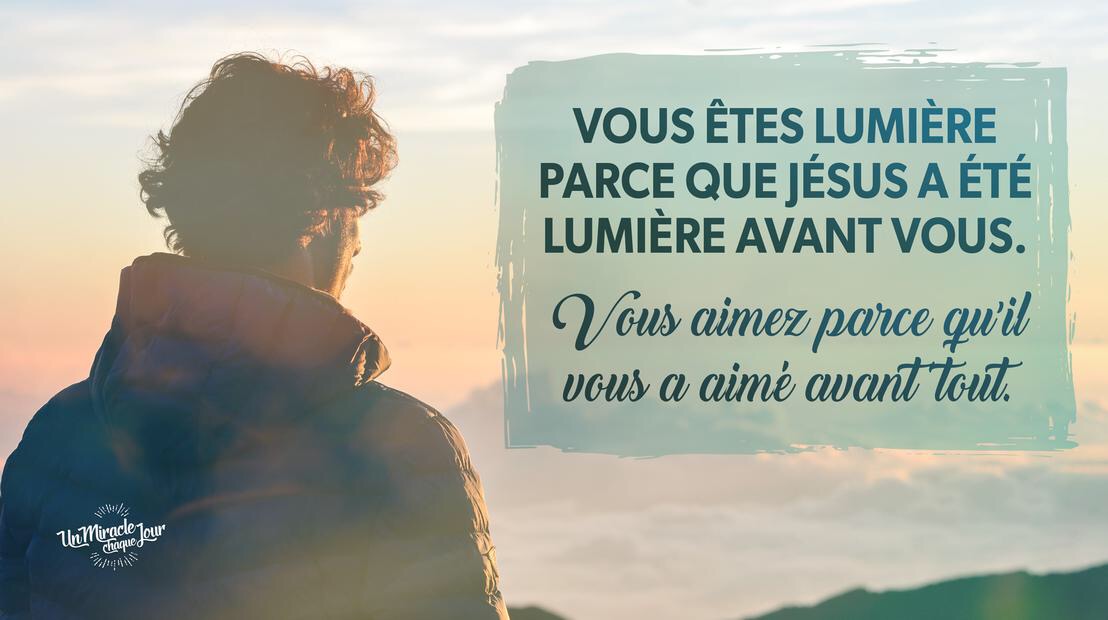 Vous brillez parce que vous manifestez sa nature. Aussi, vous brillez lorsque vous agissez avec amour, lorsque vous pardonnez, lorsque vous choisissez de vous humilier volontairement… Cette lumière là est véritable parce qu’elle trouve sa source… à LA source : Jésus.