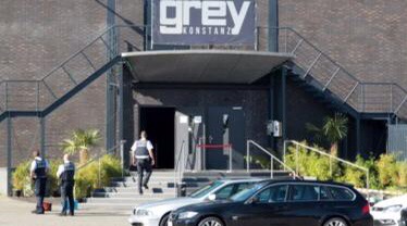 Abapolisi bahagaze ku muryango w’akabyiniro « Grey » i Konstanz, mu BUdage. Aho umugabo w’imyaka 34 yarasiye abantu benshi.Polisi iravuga ko abantu babiri bapfuye abandi batatu bakomerekera mu bikorwa byo kurasana byabereye mu nzu y’urubyiniro mu mujyi w’ubudage wa Constance.