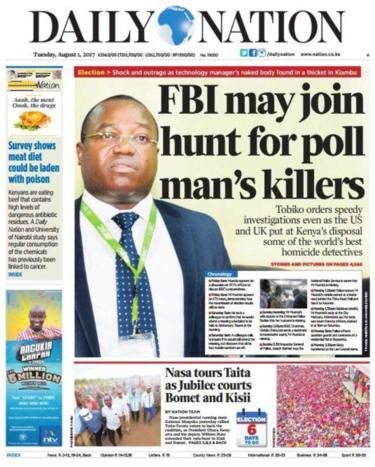 Yatowe yapfuye mu mpera z’indwi iheze. Ku bw’uwurongoye akanama k’amatora, Wafula Chebukati, « ngo nta nkeka ko uwo muntu yahohotewe munyuma akicwa ».