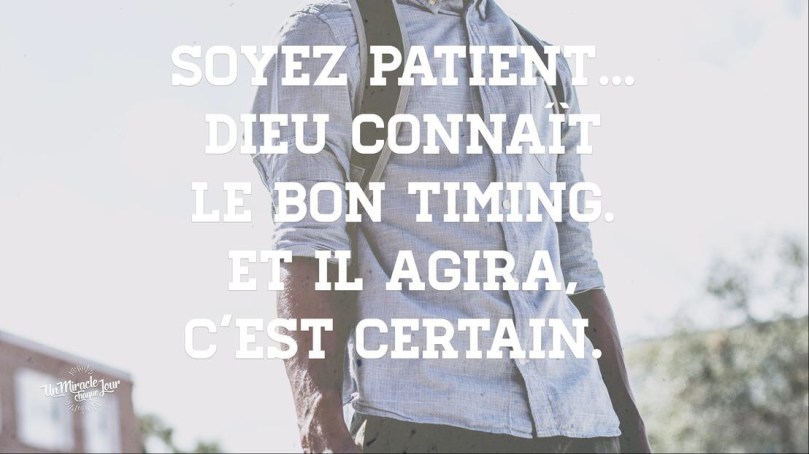 Mon ami(e), attendez sa réponse. Dieu est souverain dans sa façon d’agir. Il fait quand il veut et comme il veut. Il connaît le bon timing. Et il agira, c’est certain.