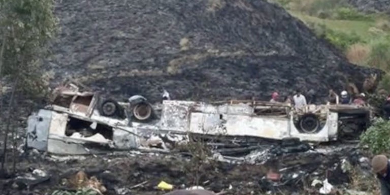 Dans une montée, au nord de la capitale Antananarive, le chauffeur n’a pas réussi à passer une vitesse. Le véhicule a alors reculé, avant de tomber dans un ravin. Le moteur a ensuite pris feu et explosé, ce qui a propagé l’incendie à l’ensemble du véhicule. Les jeunes qui se trouvaient à l’étage sont restés captifs des flammes. 12 jeunes sont morts sur place, 22 autres jeunes et accompagnants sont décédés peu après leur arrivée à l’hôpital.
