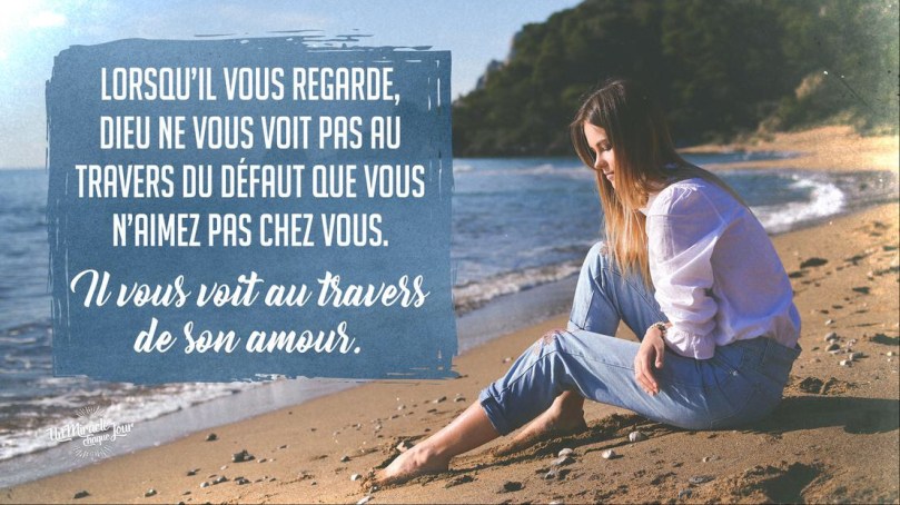 Lorsqu’il vous regarde, il ne vous voit pas au travers du défaut que vous n’aimez pas chez vous. Il vous voit au travers du sang de Christ, de sa sainteté, de sa grâce et de son amour.