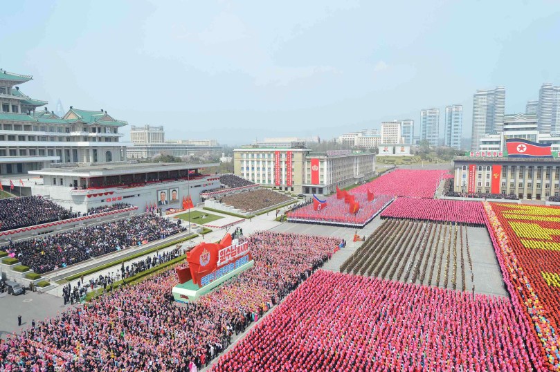 Sur ces images fournies par l’agence nord-coréenne KCNA, des milliers de Nord-Coréens réunis à Pyongyang manifestent pour soutenir leur régime. Les panneaux relaient des messages belliqueux à l’égard des adversaires du «royaume ermite».