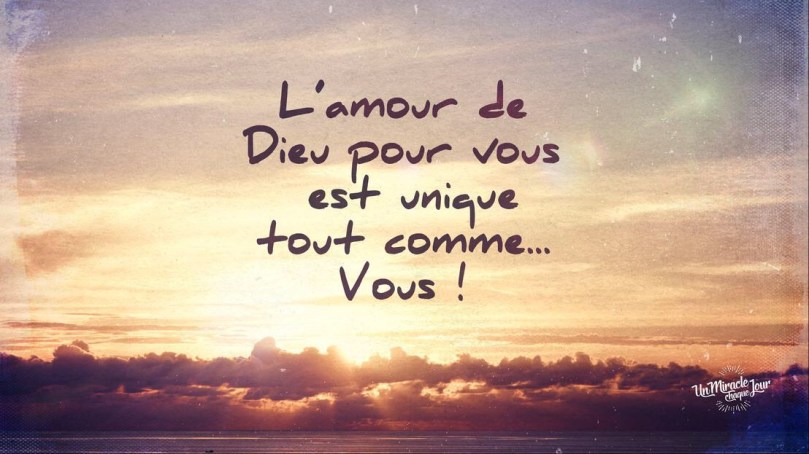 « Depuis que je lis Un Miracle Chaque Jour, j’ai une plus grande estime de moi, je m’accepte. Avant je vivais ma vie par procuration. J’enviais les gens. Pour moi j’étais bonne à rien. Maintenant je sais que Dieu m’aime telle que je suis. J’ai accepté son amour, crois ce que Dieu dit de moi, que je suis une créature merveilleuse, créée à son image. Je suis recréée en Christ, les choses anciennes sont passées, toutes choses sont devenues nouvelles. »