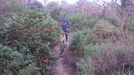 Des militaires burundais en pleine patrouille dans la réserve naturelle de la Rukoko non loin de la frontière avec la RDC
