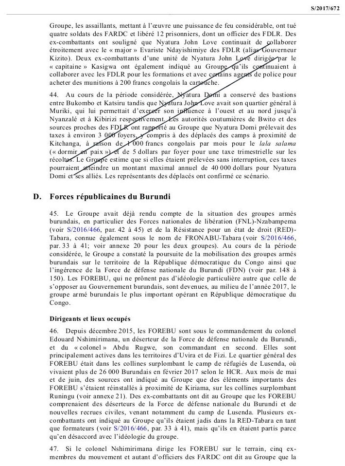 Uburundi bukaba bubikora kugira abo banyagihugu bo muri Congo bafashe kurwanya iyo mirwi ishobora gutera Uburundi, nk’uko bibandanya bivugwa muri ico cegeranyo c’abahinga ba ONU.