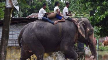 Inzovu isoboka mu myuzure i Koliabor mu Buhindi. Hafi abantu imiliyoni cumi barageramiwe kubera imyuzure mu buseruko bw’igihugu.