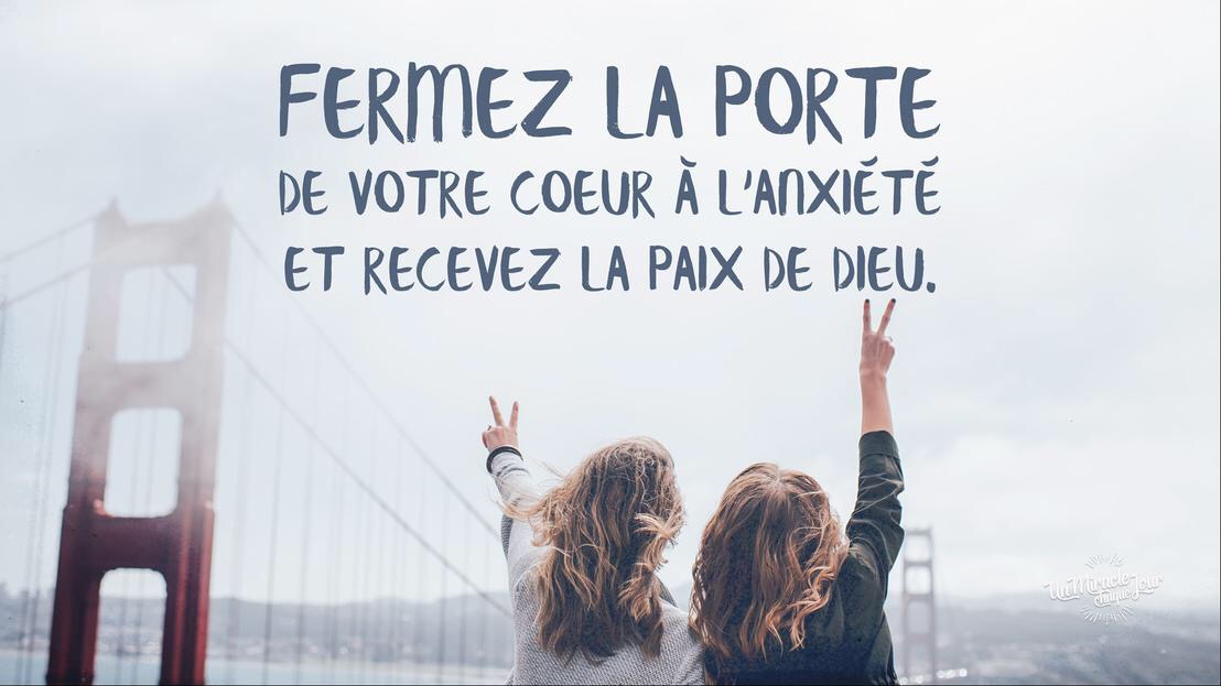 Prions ensemble maintenant : « Seigneur, tu es plus grand que la source de mes inquiétudes. Tu connais en détails la situation dans laquelle je me trouve. Tu connais parfaitement l’état de mon cœur mieux qu’aucun homme, mieux qu’aucun médecin. Mieux que personne tu peux prendre soin de moi et me délivrer de la peur. Merci pour ta vie qui grandit en moi et pour ta paix que je reçois. Au nom de Jésus-Christ je t’ai prié, amen. »