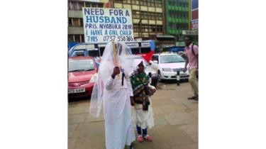 Umunyakenyakazi w’imyaka 28 yagiye mu gisagara ca Nairobi yitwaje icapa canditseko ko ashaka umugabo, yambaye impuzu z’ubugeni.