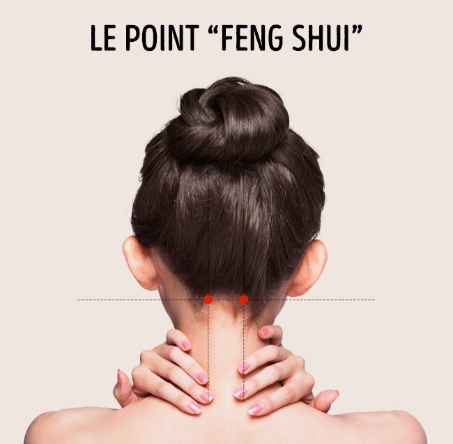 Ces points se trouvent sur la partie arrière de la tête, entre l’oreille et la base de la colonne vertébrale. Le massage de ces points permet de déboucher le nez, de soigner le mal aux yeux et aux oreilles, ainsi que les maux de tête.