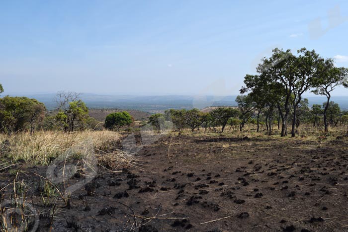 Vue partielle des dégâts causés par les feux de brousse dans le parc national de la Ruvubu.