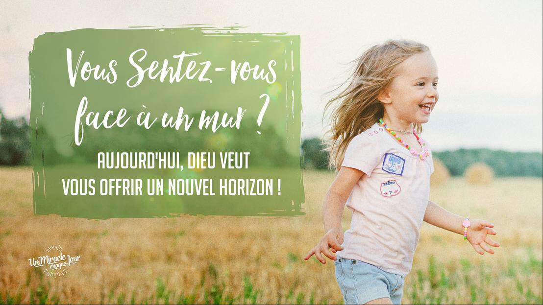 Prions ensemble… « Seigneur, aujourd’hui mon horizon est bouché. Je me sens enfermé(e) dans une situation sans issue. S’il te plaît, viens à mon secours, élargis ma vision et donne-moi un nouvel horizon. J’ai confiance en toi, j’espère en toi. Amen ! »