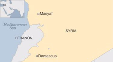 Itangazo rya gisirikare rivuga ko ibisase vya rokete vyatewe biva muri Liban vyateye ico kibanza cegereye Masyaf, bihitana abasirikare babiri.