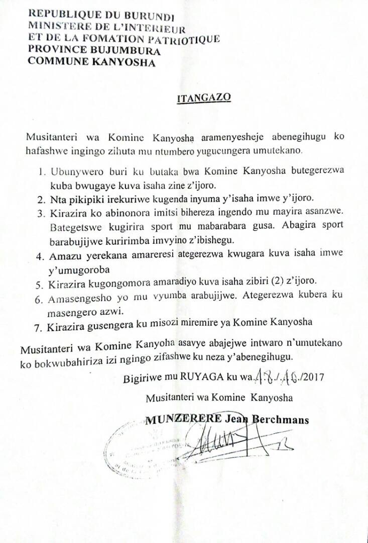 Uburundi buguma buta umurongo mu ngingo nyinshi zifatwa n’abategetsi.Ni ibintu bitahuritse gufata ingingo zo gukingira umutekano w’abanyagihugu. Ivyo biragirwa kw’isi yose. Mugabo iyo umutegetsi uyu canke uriya atanguye gufata ingingo aho gukingira abantu zibakandamiza aba ariko arakwega imivurungano mu karere arongoye.