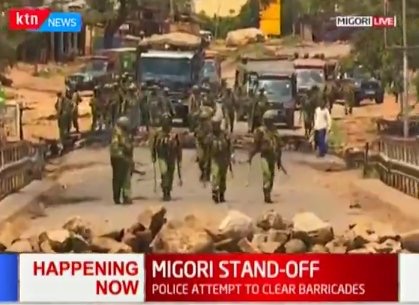 Iyo mbonakure ivuga ko igipolisi catanye mu mitwe n’abantu bari mu myiyerekano ku mupaka wa Busia igihe bazibiriye amabarabara, bagaturira isoko.