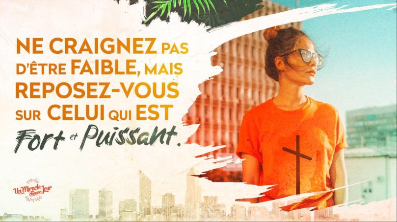 N’ayez pas peur de votre faiblesse aujourd’hui, Mon ami(e), mais remettez-la à Celui qui est fort et puissant. Croyez avec foi que Dieu se lève !