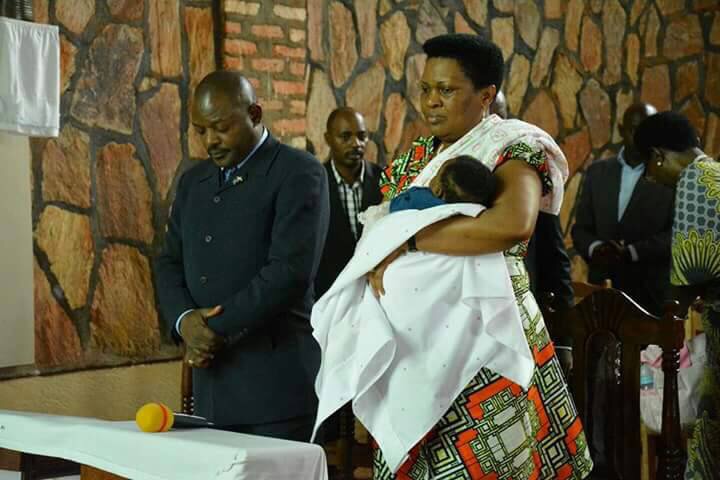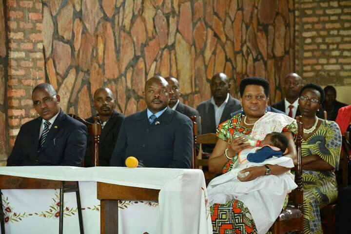 Ku mafoto BBC yashoboye kuronka yafashwe ku munsi wa Mungu uheze, Madamu Denise Nkurunziza ari kumwe n’umunega wiwe, Perezida Pierre Nkurunziza kw’isengero ry’ahitwa Gatsinda hafi y’i Buye aho avuka.