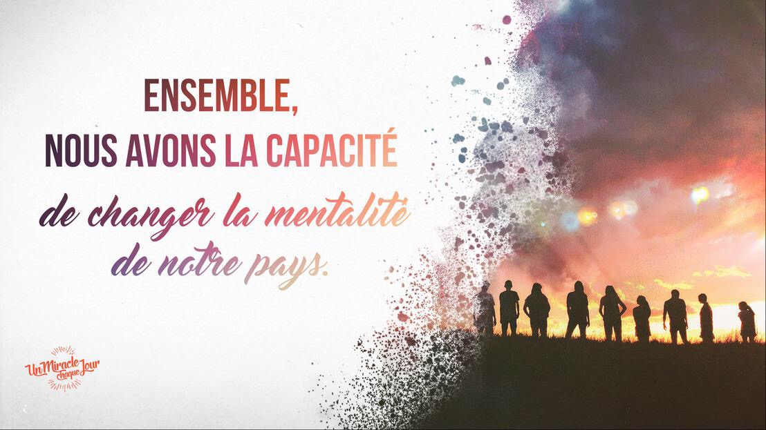 Nous avons la capacité de changer la mentalité de notre pays. Nous avons la capacité d’insuffler une culture nouvelle au monde, celle du Royaume de Dieu, dans laquelle tout est possible et où chacun est aimé et valorisé.