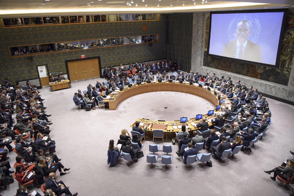 Nickolay Mladenov, le Coordonnateur spécial pour le processus de paix au Moyen-Orient, informe le Conseil de sécurité par visioconférence depuis Jérusalem. Photo: ONU / Manuel Elias