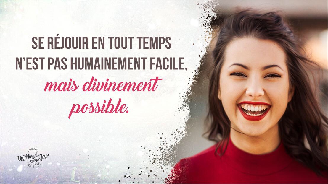 L’apôtre Paul était en prison quand il a écrit ce verset, ce qui donne encore plus de force à sa déclaration. Même en prison, même dans les pires difficultés, se réjouir c’est possible. Ce n’est pas humainement facile… mais divinement possible !