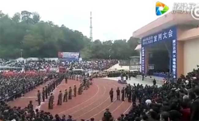 Des milliers de Chinois ont assisté samedi dans un stade de la province de Guangdong (sud) au procès de dix accusés finalement condamnés à mort et exécutés dans la foulée.