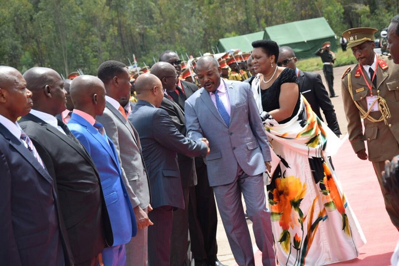 Les corps de défense et de sécurité ont réitéré leur soutien indéfectible au chef de l’Etat, M. Pierre Nkurunziza (photo : en compagnie de son épouse en train de saluer les membres du gouvernement), dans sa noble mission de renforcer la paix et la sécurité sur tout le territoire national et de réconcilier tout le peuple burundais.