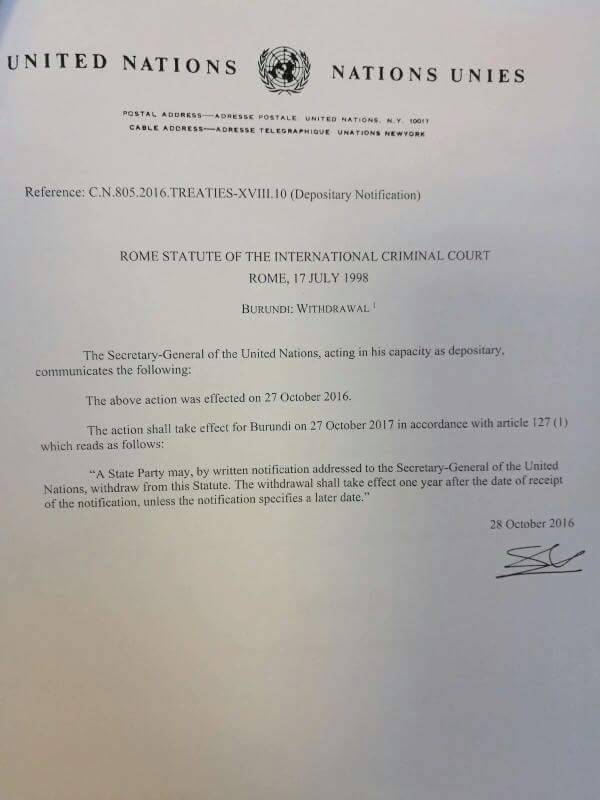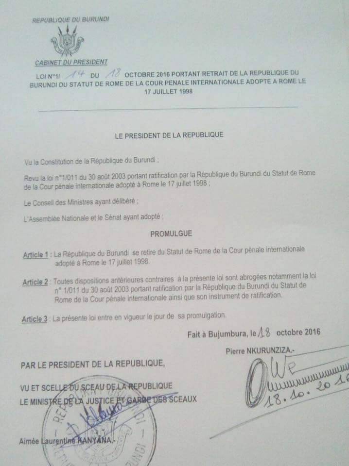 Et pourquoi la CPI après que le Burundi a déjà quitté le statut de Rome ?