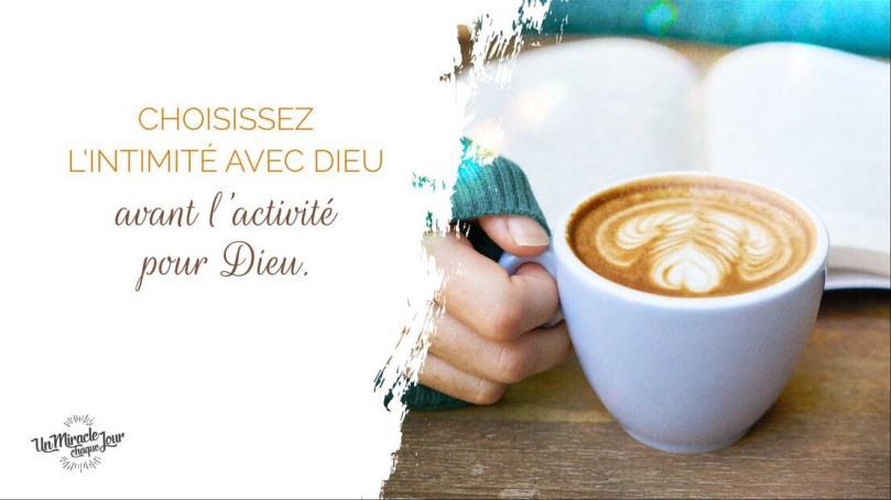 Prions ensemble : « Seigneur, je suis parfois si préoccupé(e), par mes activités professionnelles, ma vie de famille,… Je peine à passer du temps avec toi parfois. Aide-moi à venir à tes pieds et à retourner à ta table pour recevoir tes paroles qui fortifient et donnent la vie. Merci pour ta présence, apprends-moi à la rechercher et à l’apprécier chaque jour. Amen »