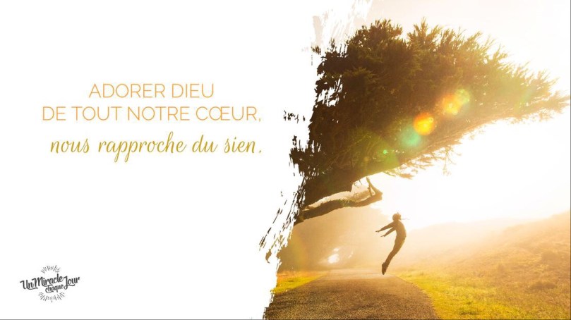 Je vous invite à prier avec moi maintenant : « Seigneur, je désire te dire tout mon amour en t’adorant. En chantant tes louanges et en prenant le temps au cours de cette journée de te parler, te remercier, de contempler ta présence. Aide-moi à t’adorer comme il se doit. Que je puisse ressentir ton amour d’une manière toute particulière aujourd’hui et que ton flot d’amour puisse nourrir le mien pour toi. Amen. »