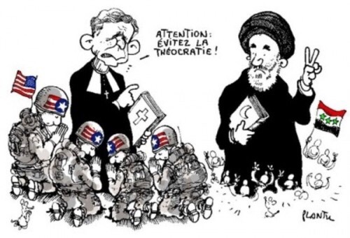 Que l’on ne s’y trompe pas, le dogme théocratique n’est pas uniquement présent dans les gouvernements typiquement religieux où il est monstrueusement visible. On en retrouve l’ADN dissimulé dans toutes les formes de pouvoir, y compris dans les républiques qui se définissent laïques. Toutes, sans exception, ont hérité des valeurs transmises pendant des siècles par les « fonctionnaires de Dieu » au service des monarchies, puis des oligarchies, considérées à tord aujourd’hui comme le modèle de la démocratie.