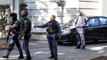 Igipolisi muri Afrika y’epfo cafashe abantu batatu mu bikorwa vyo gusaka vyabereye no ku nzu imwe y’umuryango ukomeye cane ufitaniye ubugenzi n’umukuru w’igihugu Jacob Zuma.