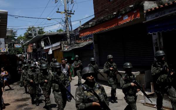 « Le crime organisé a presque pris le contrôle de l’Etat de Rio. C’est une métastase qui se répand dans le pays et menace la tranquillité de notre peuple, a expliqué Michel Temer. Nous ne pouvons accepter passivement la mort d’innocents. Il est intolérable que nous enterrions des pères et de mères de famille, des travailleurs, des policiers, des jeunes et des enfants, [il est intolérable de voir] des écoles cernées par les fusils et des rues transformées en tranchées. C’est fini. Assez. Nous n’allons pas accepter qu’ils tuent notre présent et continuent d’assassiner notre futur. »
