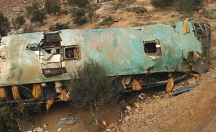 L’autobus à deux étages, dont la licence était périmée, roulait à l’aube sur la route panaméricaine, près de la ville de Ocona (780 km au sud de Lima) quand il est tombé dans un précipice de 80 mètres.