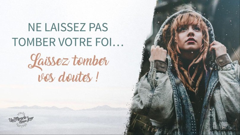 Ne doutez pas et ne faiblissez pas, mais gardez les yeux fixés sur Jésus et fortifiez-vous en lui. Alors, ne laissez pas tomber votre foi, mais laissez tomber vos doutes…