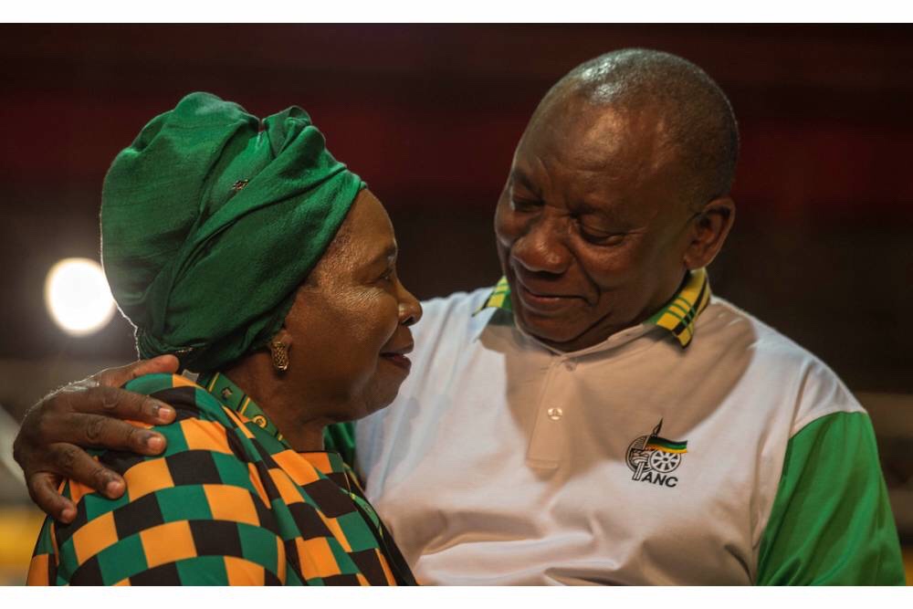 Le nouveau président élu du Congrès national africain (ANC) et actuel vice-président sud-africain Cyril Ramaphosa est félicité par Nkosazana Dlamini-Zuma lors de la 54e conférence de l’ANC à Johannesburg le 18 décembre 2017. © AFP/Mujahid Safodien