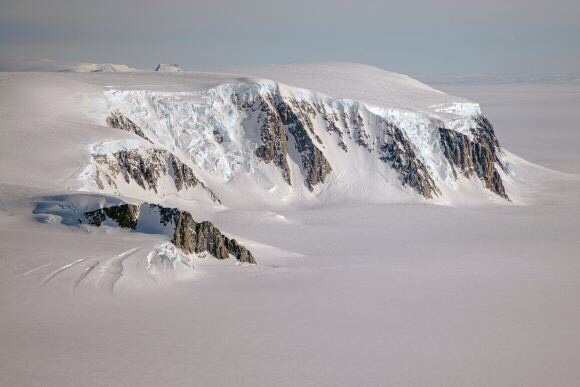 De nombreuses failles sont visibles du haut des airs,au-dessus de l’Antartique.