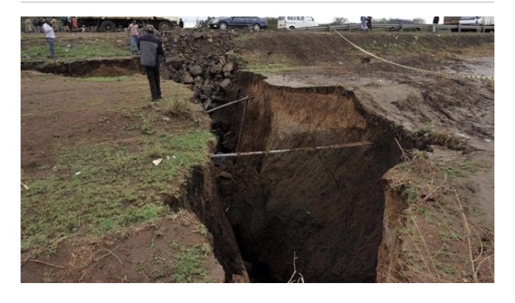« Dans un passé récent, la vallée du Rift, elle, est peut-être restée inactive sur le plan tectonique, indique encore David Adede dans The Independent. Mais il pourrait y avoir des mouvements profonds dans la croûte terrestre qui ont donné lieu à des zones de faiblesse qui s’étendent jusqu’à la surface. Ces zones de faiblesse forment des lignes de failles et des fissures qui sont normalement remplies de cendres volcaniques, probablement du mont Longonot voisin. Les pluies n’ont fait qu’aggraver la situation en lavant les cendres, ce qui a fini par exposer les fissures. »