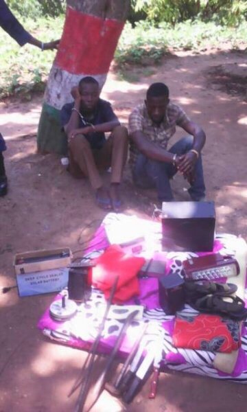 Pierre NKURIKIYE avugira ubushikiranganji bw’umutekano, amenyesha ko abo basuma babiri, bafatanywe kandi, ibikoresho bakoresho mu kwugurura amazu, imbere y’uko biba ibirimwo.