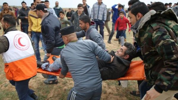 Abanyapalestina baharurwa mu bihumbi, bahuriye mu myiyerekano, mu kibanza kiri ku rubibe mu gace ka Gaza, aho igihugu ca Isirayeri cakomeje cane umutekano.