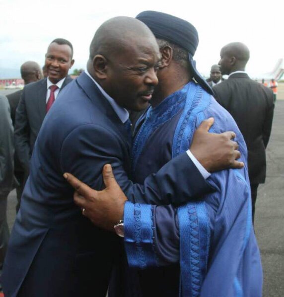 Ali Bongo Ondimba yashitse ku kibuga c’indege ca Bujumbura nk’igihe c’isaha zitanu n’iminota mirongo itatu, akaba yakiriwe na mugenzi atwara Uburundi, Petero NKURUNZIZA. Inyuma y’umwanya muto bamaze baganira mu cicaro c’iteka (Salon VIP), umukuru w’igihugu Petero NKURUNZIZA yaciye aja kwakira Ali Bongo Ondimba mu biro vy’umukuru w’igihugu i Bujumbura, aho vyari bitegekanijwe ko baganira mw’ibanga (Tête à tête).