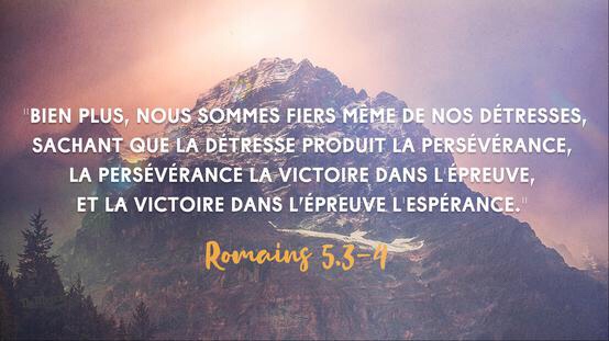 Nous lisons dans la Bible : « Bien plus, nous sommes fiers même de nos détresses, sachant que la détresse produit la persévérance, la persévérance la victoire dans l’épreuve, et la victoire dans l’épreuve l’espérance. » (Lire Romains 5.3-4.)