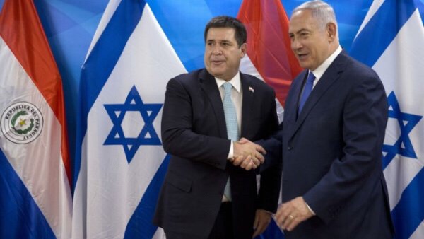 Umukuru w’igihugu ca Paraguay Horacio Cartes hamwe n’umushikiranganji wa mbere wa Israel, Benjamin Netanyahu bari bishikiye mu birori vyo kwugurura ivyo biro vy’uwuserukira Paraguay muri Israel.
